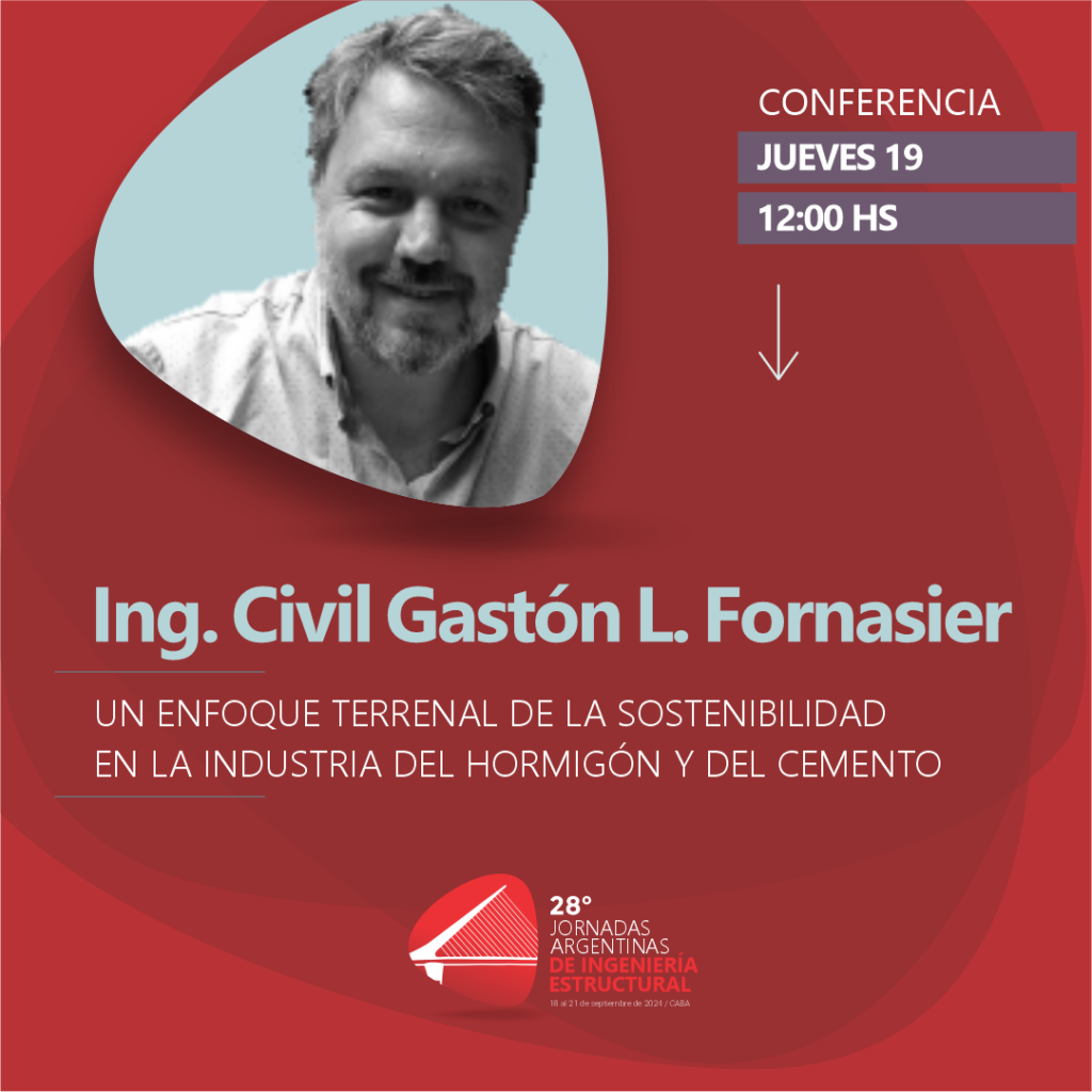 📅 JUEVES 19 DE SEPTIEMBRE | 🕑 12:00 HS El Ingeniero Civil Gastón L. Fornasier se hará presente en las 28° Jornadas Argentinas de Ingeniería Estructural, brindando la conferencia «Un enfoque terrenal de la Sostenibilidad en la Industria del Hormigón y del Cemento». El Ing. Fornasier ofrecerá una visión integral